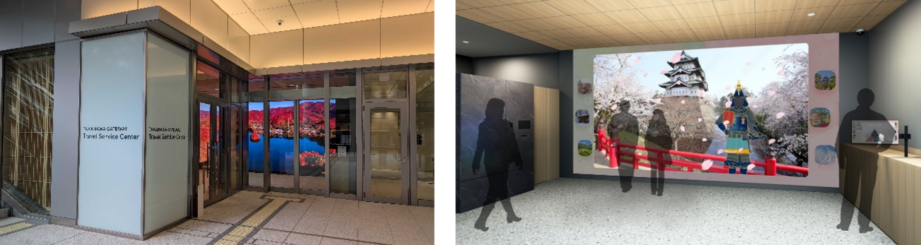 TAKANAWA GATEWAY Travel Service Centerは高輪ゲートウェイ駅直結の観光情報拠点。東日本エリアの旅情報や乗車券販売、大型サイネージで地域の魅力を発信し、旅の相談にも対応しています。